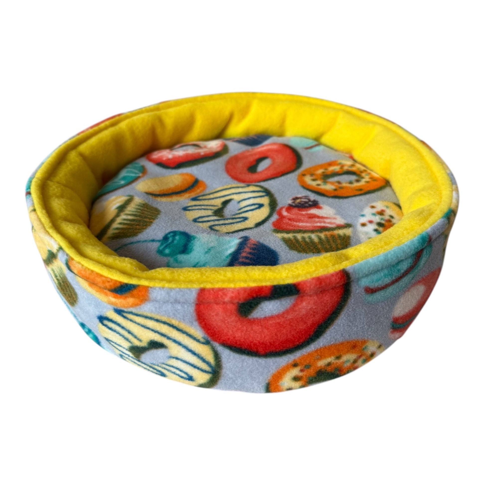 Flisinis guolis „Lėkštė“ jūrų kiaulytei | Geltonas su spurgų raštu