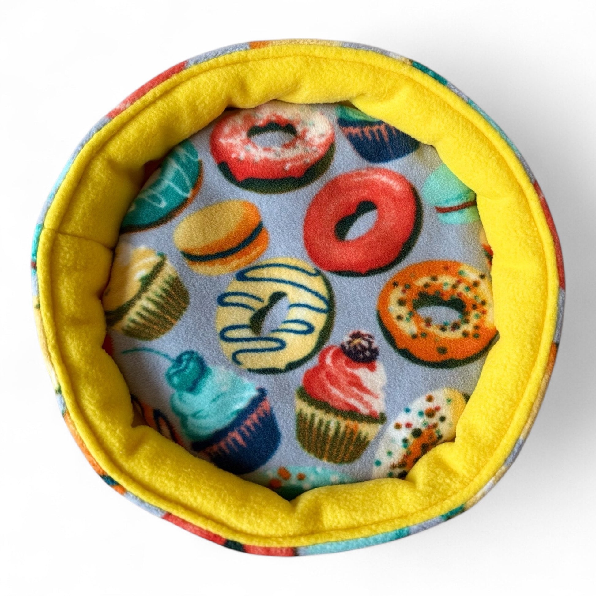 Šis modelis – geltonas su linksmu spurgų raštu, todėl narvelyje atrodo žaismingai ir stilingai.