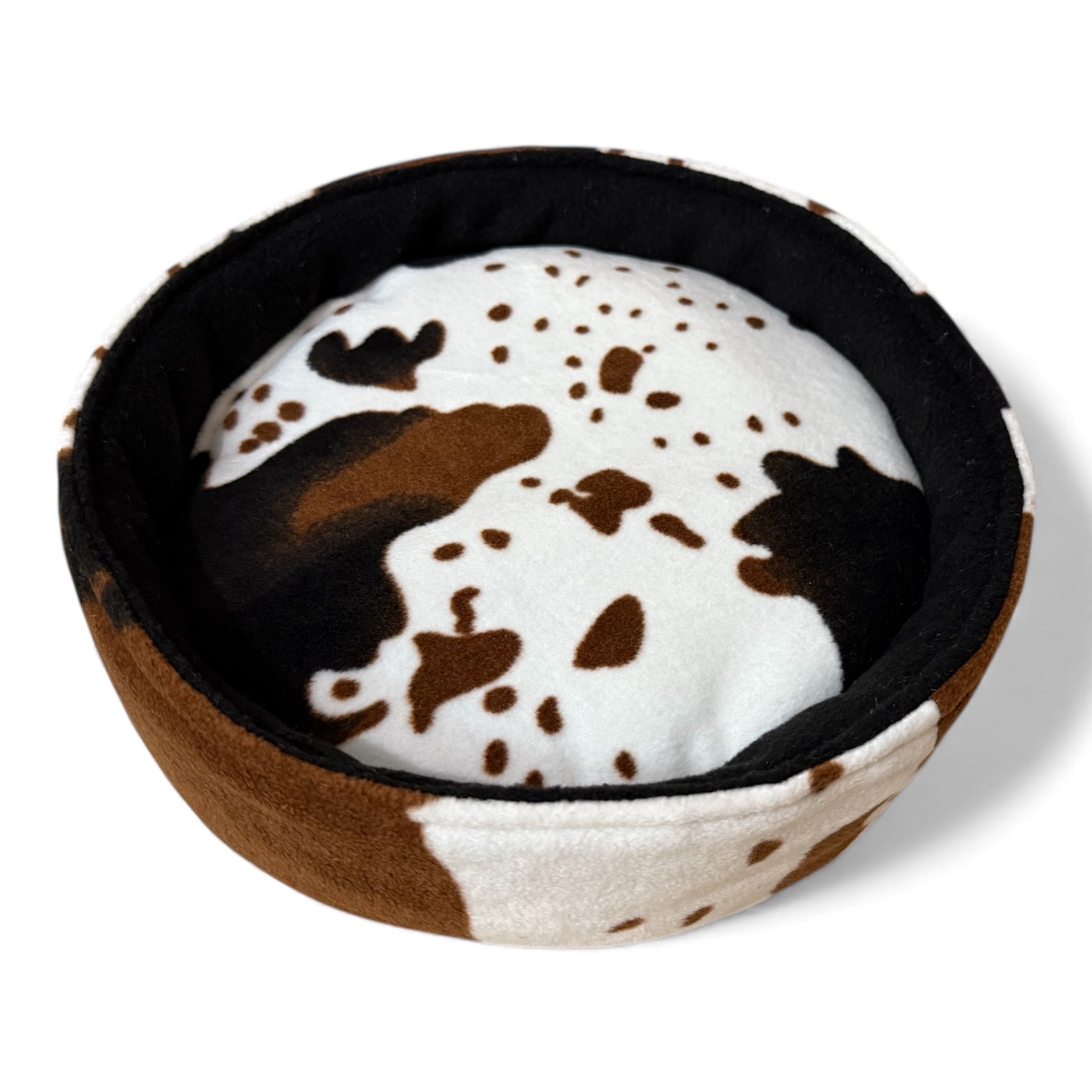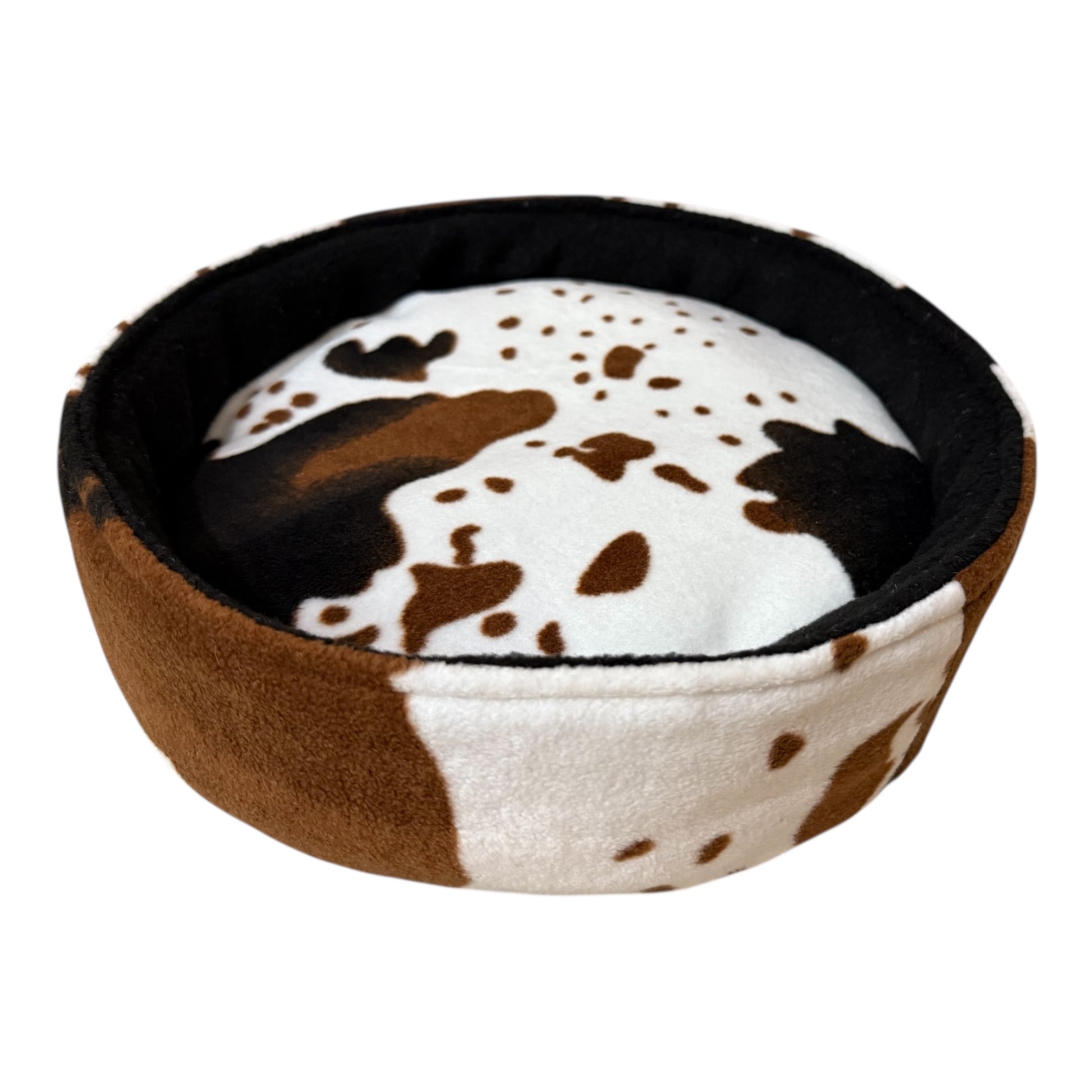 Lėkštė – tai minkštas, žemų sienelių flisinis guolis jūrų kiaulytei 🐹, sukurtas patogiam poilsiui, miegui ir glostymams. Juodas flisas ir karvės raštas suteikia narvui žaismingo stiliaus, todėl guolis tampa ir patogus ir gražus akiai.