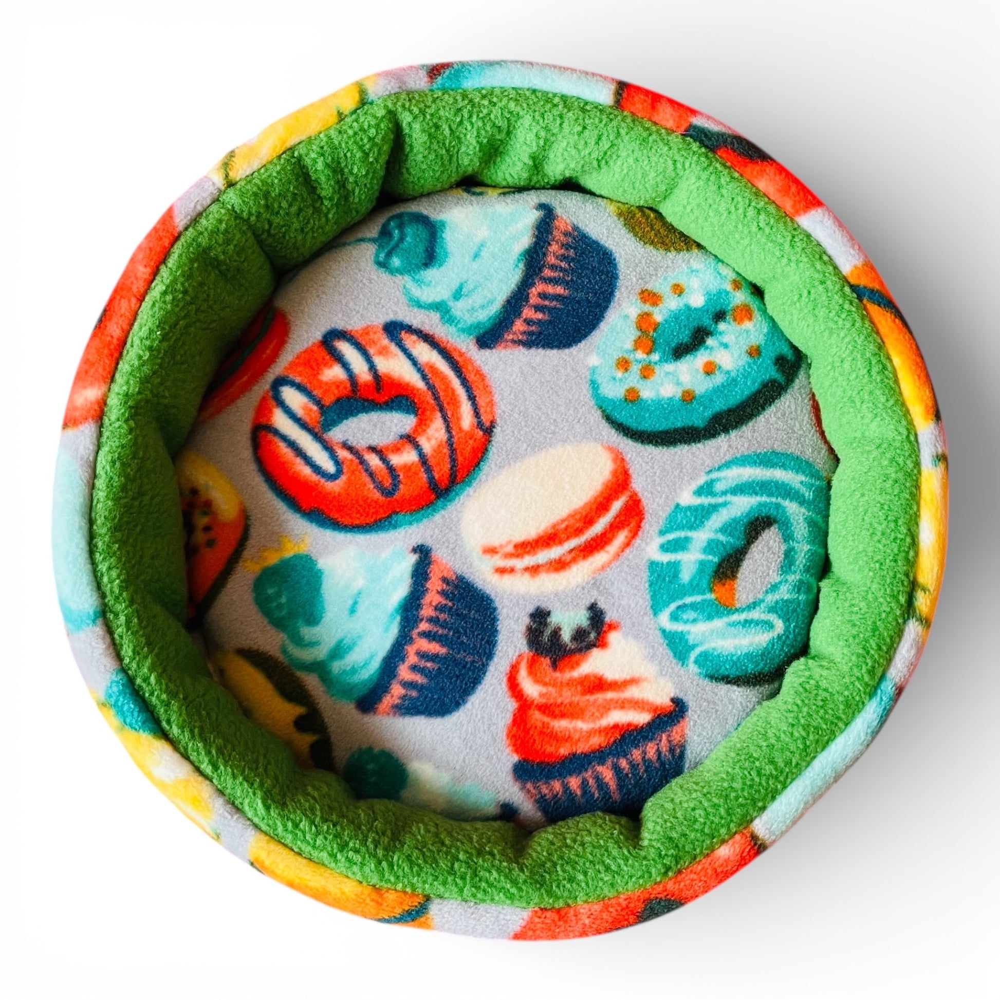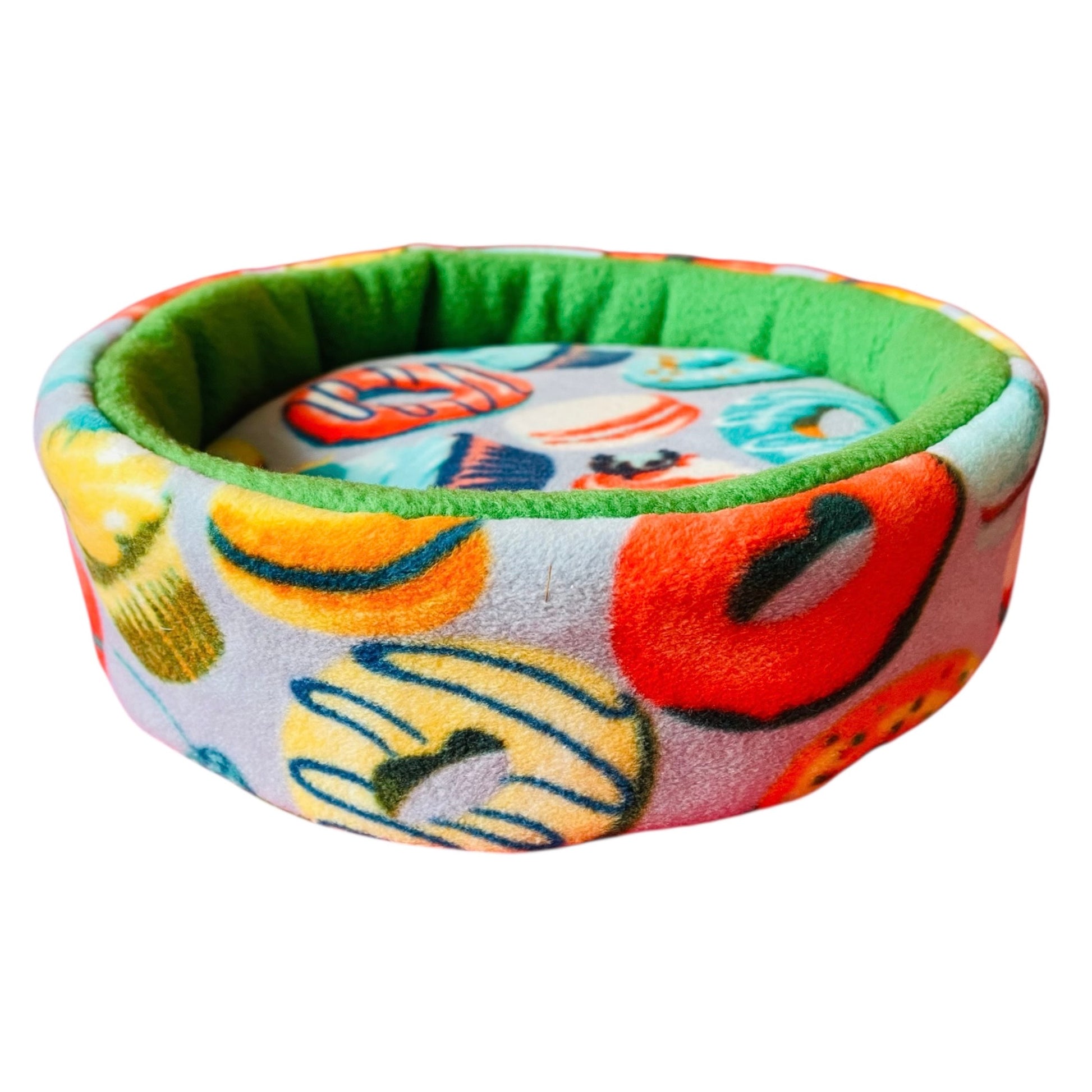 Lėkštė – tai minkštas, žemų sienelių flisinis guolis jūrų kiaulytei 🐹, sukurtas patogiam poilsiui, miegui ir glostymams. Spurgų raštas suteikia žaismingo stiliaus, todėl guolis tampa ir patogus ir gražus akiai.
