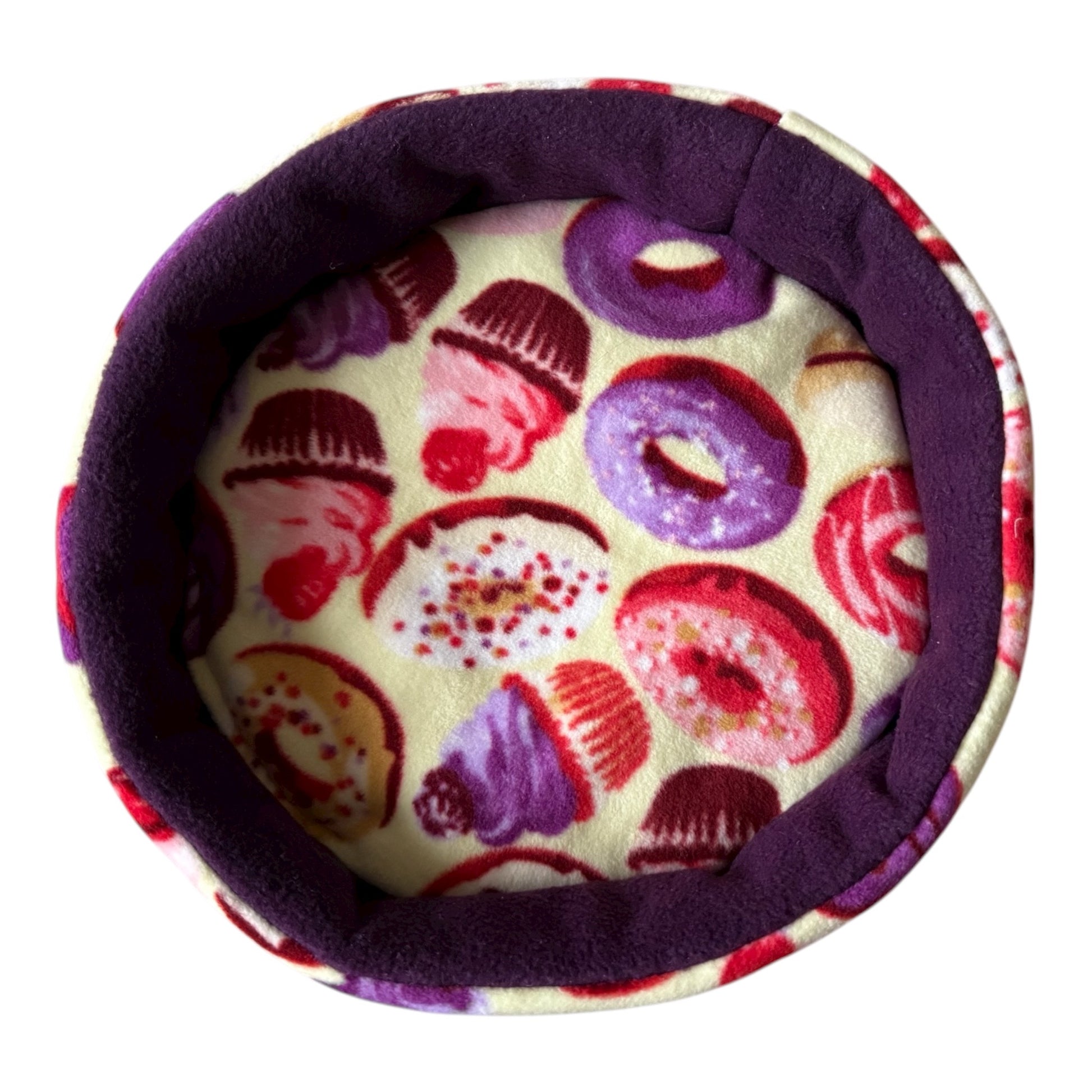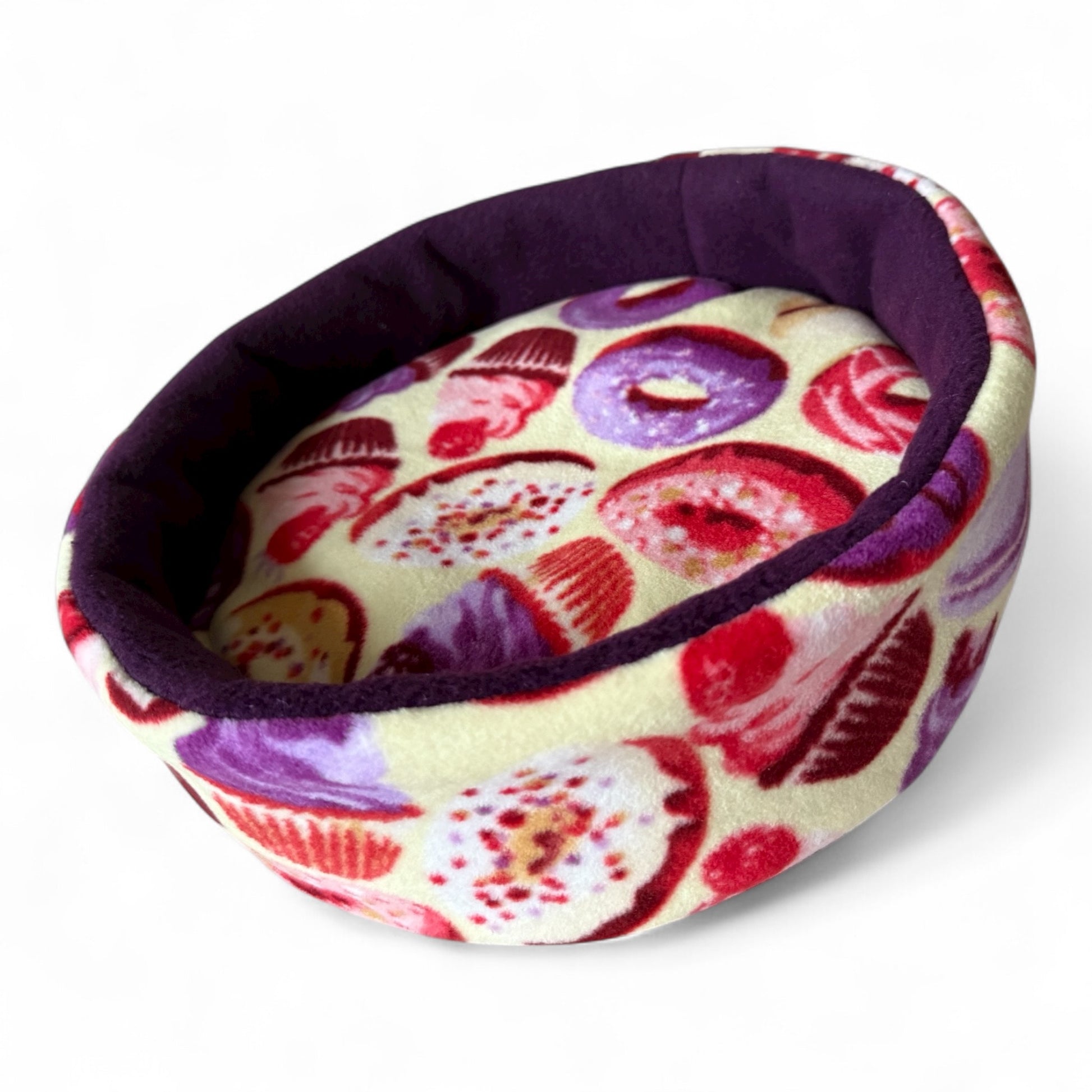 Flisinis guolis „Lėkštė“ jūrų kiaulytei | Violetinis su spurgų raštu