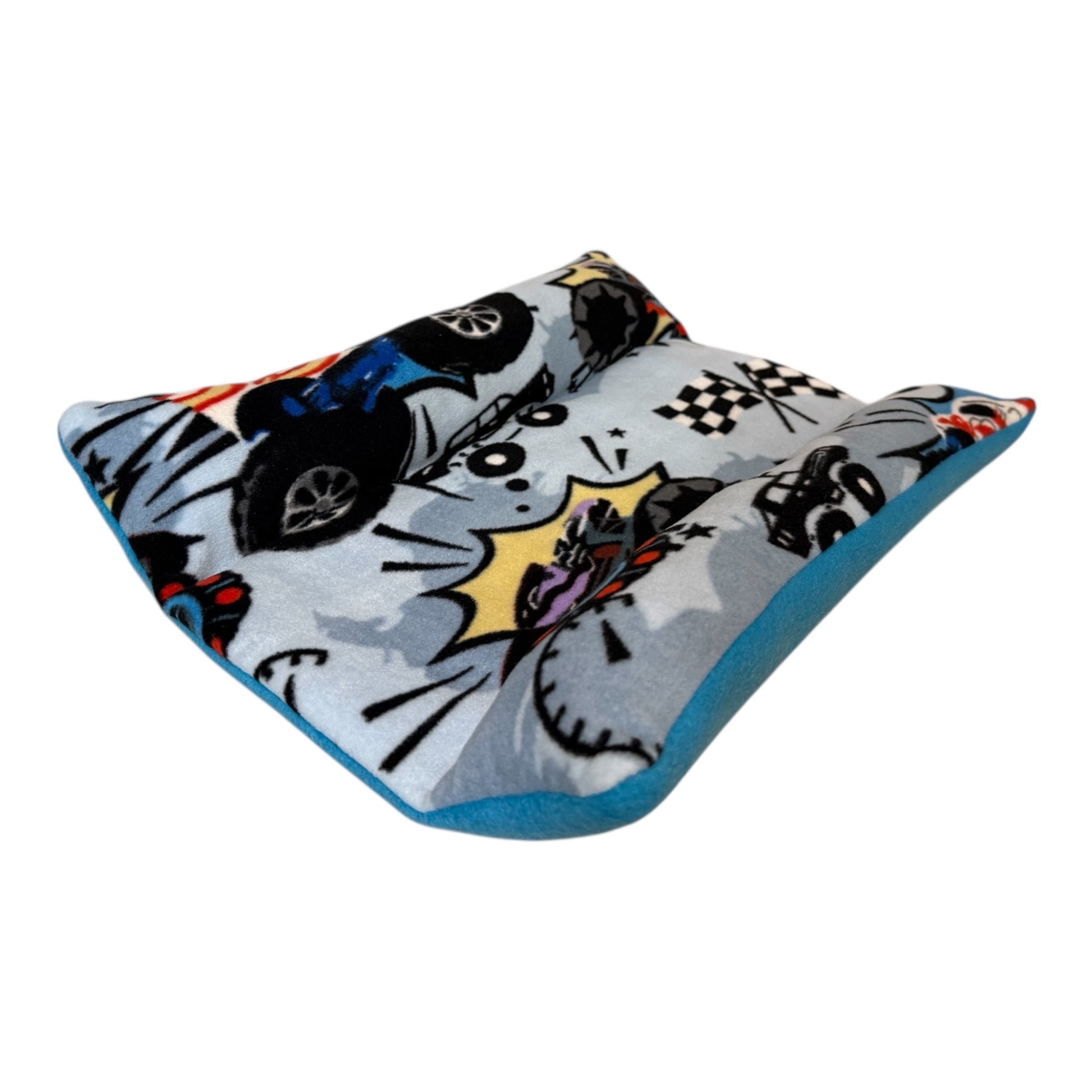 Ši „Jaukuolio“ versija pasiūta iš švelnaus pilko fliso su lenktyninių automobilių ir vėliavėlių raštu – žaismingas ir išskirtinis pasirinkimas.