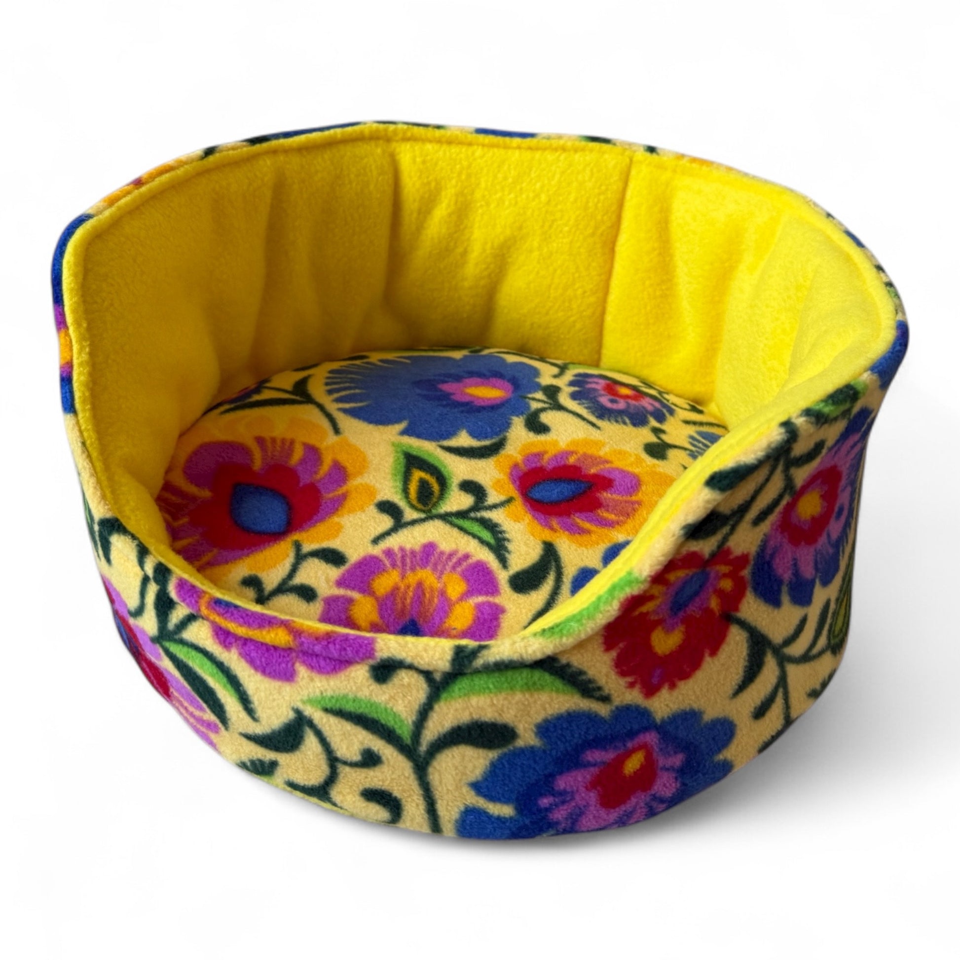 🧡 Guolis „Kutuliukų puodelis“ (19 €) – apvalus, minkštas guolis su krašteliais, skirtas patogiam poilsiui ir miegui.