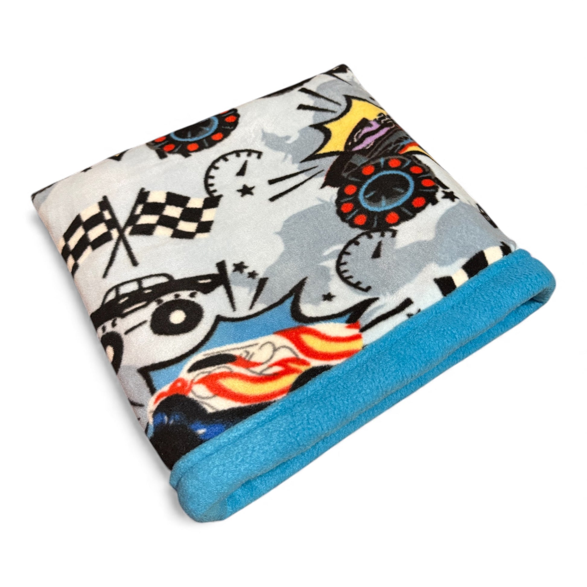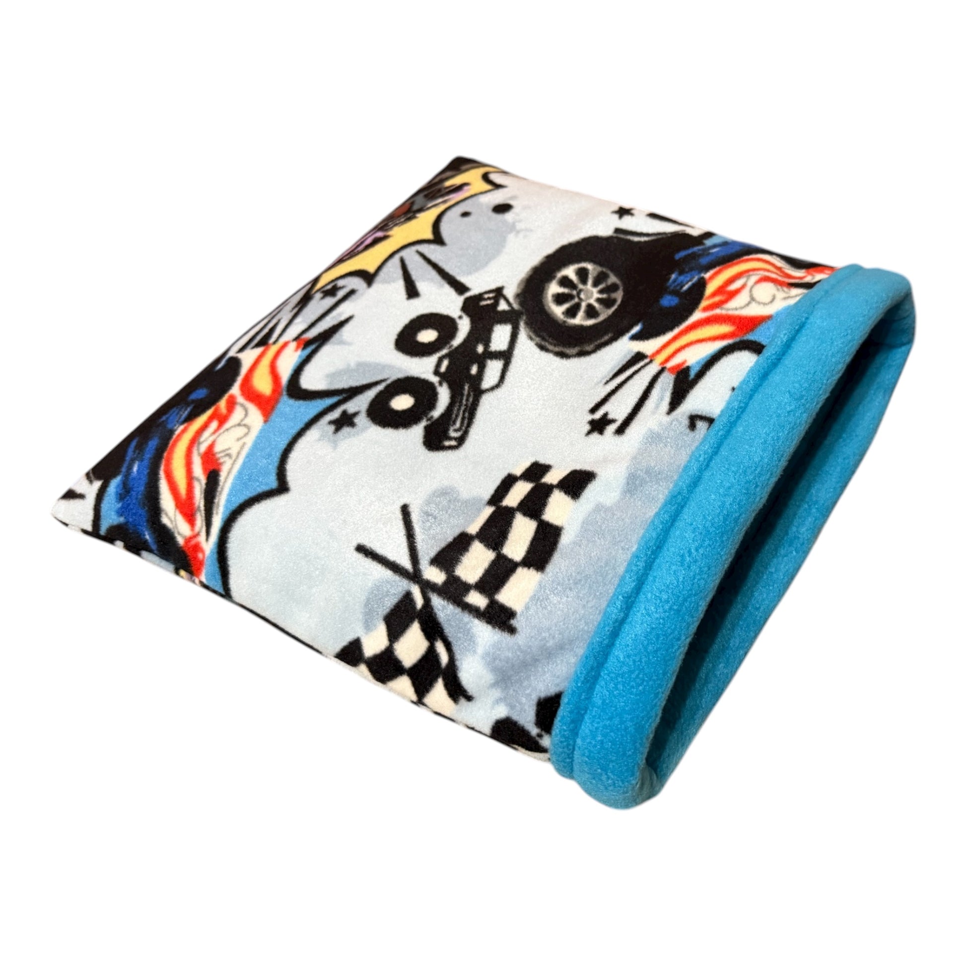 Flisinis guolis–miegmaišis jūrų kiaulytei – mėlynas su mašinom
