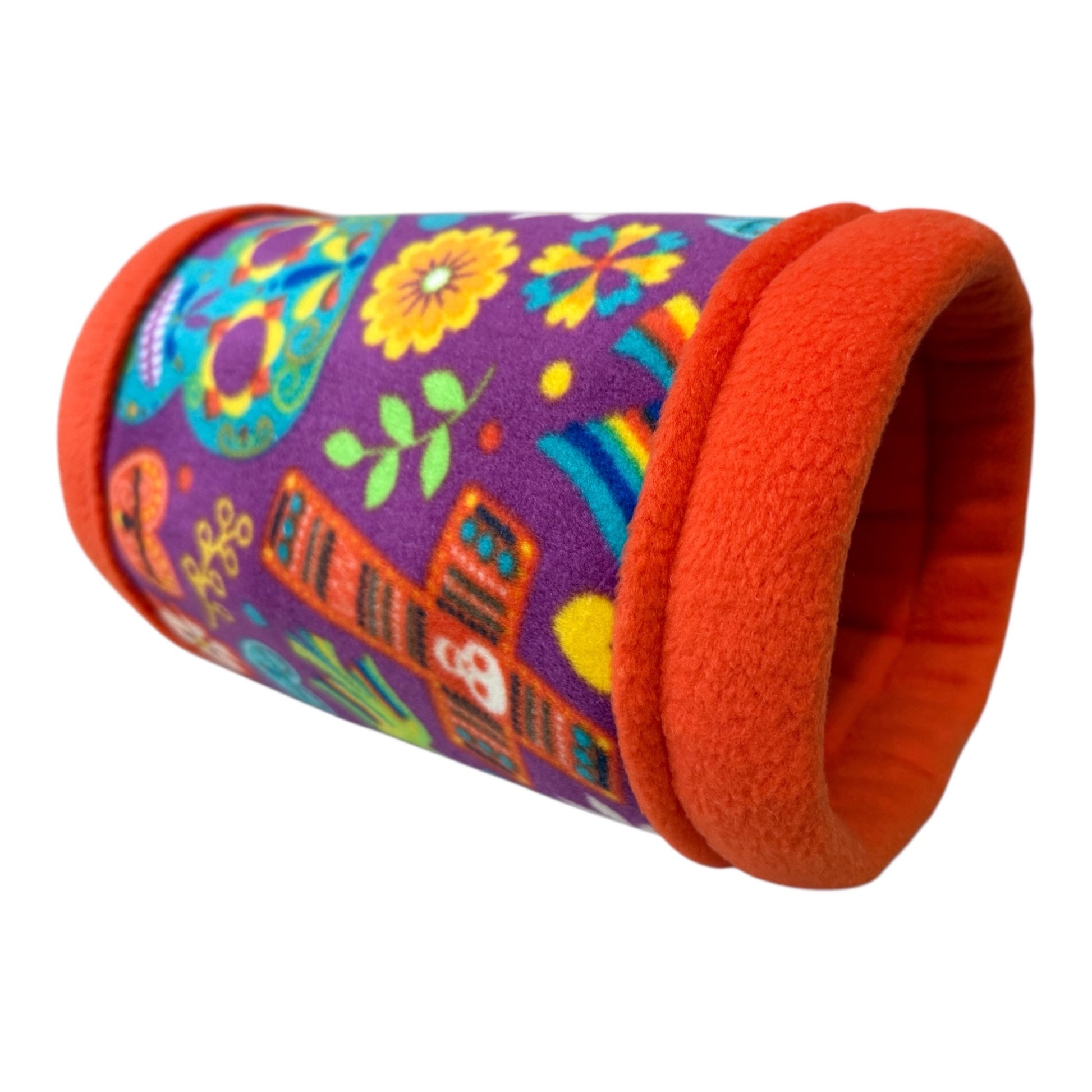 Flisinis tuneliukas jūrų kiaulytei – oranžinis su meksikietišku raštu.