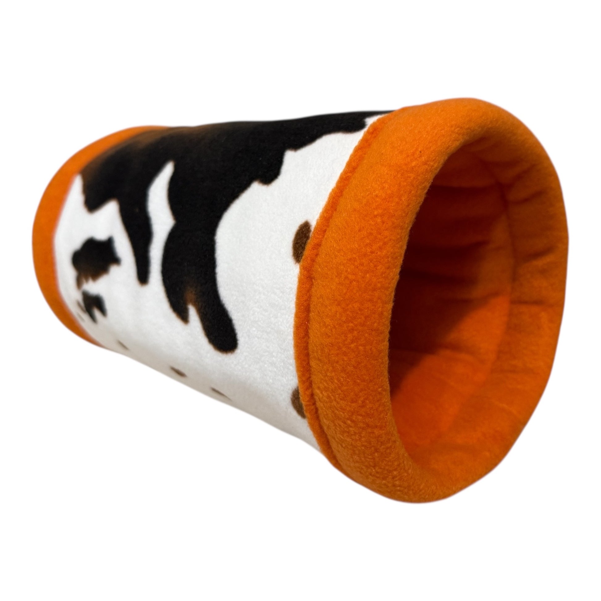 Flisinis tuneliukas jūrų kiaulytei – oranžinis su karvės raštu