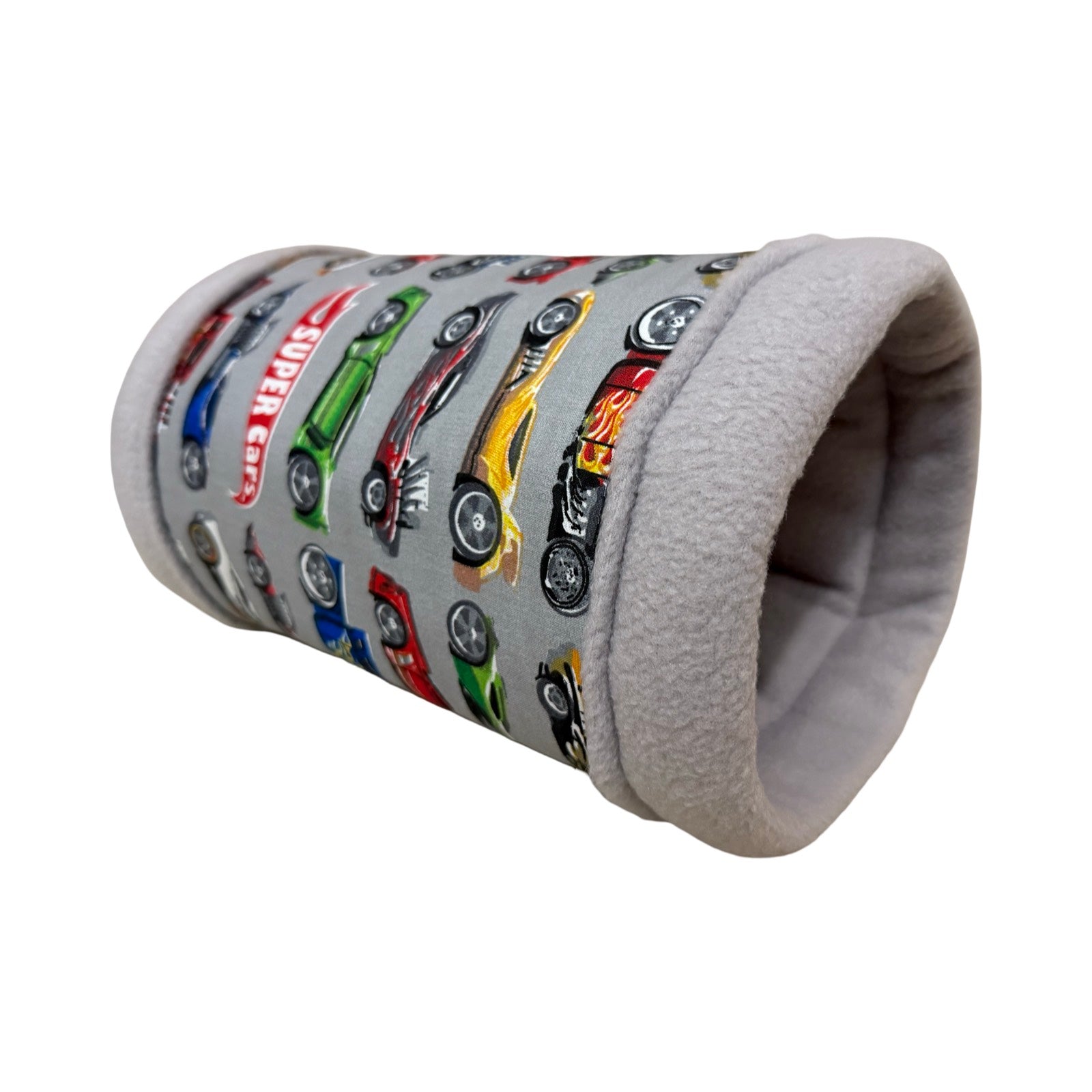 Flisinis tuneliukas jūrų kiaulytei – pilkas su mašinom.